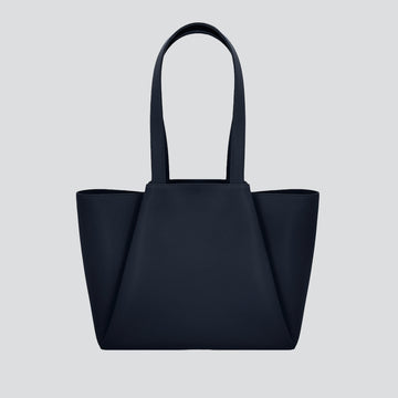 The Midi Pyramid - night blue features a laptop pocket that fits up to 13.5 inchs (diagonal) or laptops with a max width of 12.8 inches.